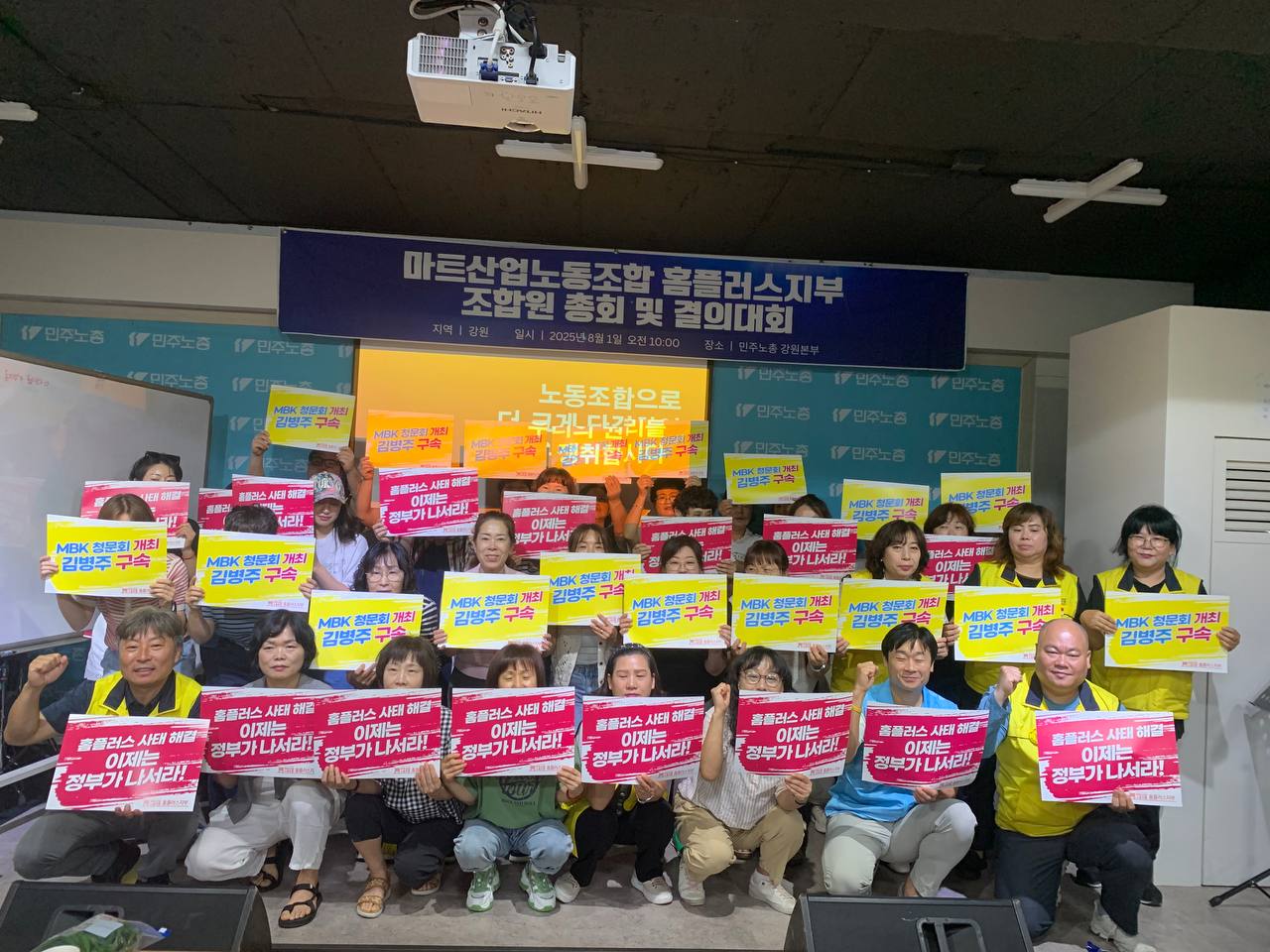 마트노조 홈플러스지부 강원 조합원 총회 및 결의대회가 8월1일 민주노총 강원본부 대회의실에서 열렸습니다.