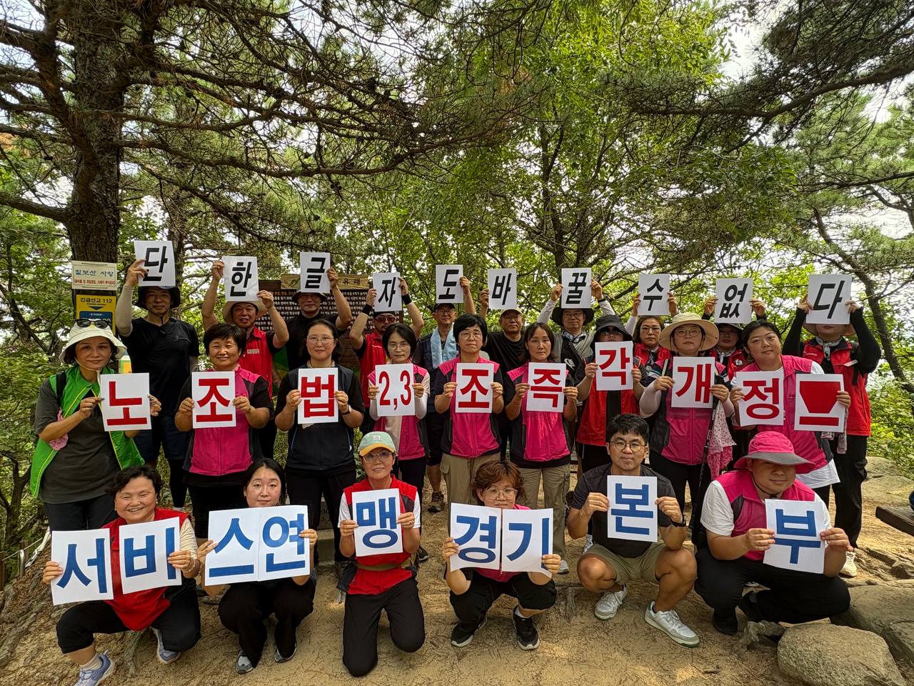 서비스연맹 경기본부는 30도가 넘는 날씨이지만 수원 칠보산 산행을 하며 간부단합대회를 진행했습니다.