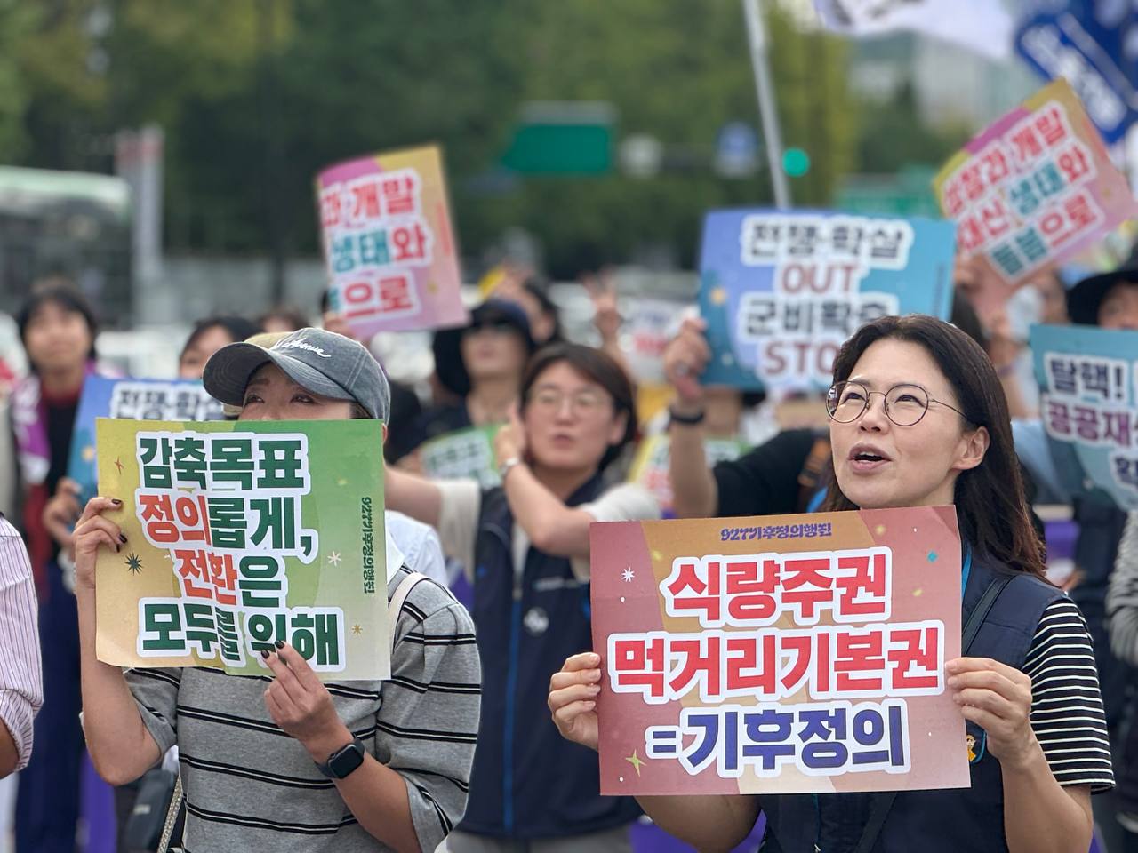 9월 27일, 927기후정의행진이 펼쳐졌습니다. 올해 기후정의행진은 ‘광장을 잇자, 기후정의로’라는 구호와 함께 지난 겨울 응원봉의 빛으로 가득찼던 광화문 동십자각에서 진행되었습니다.