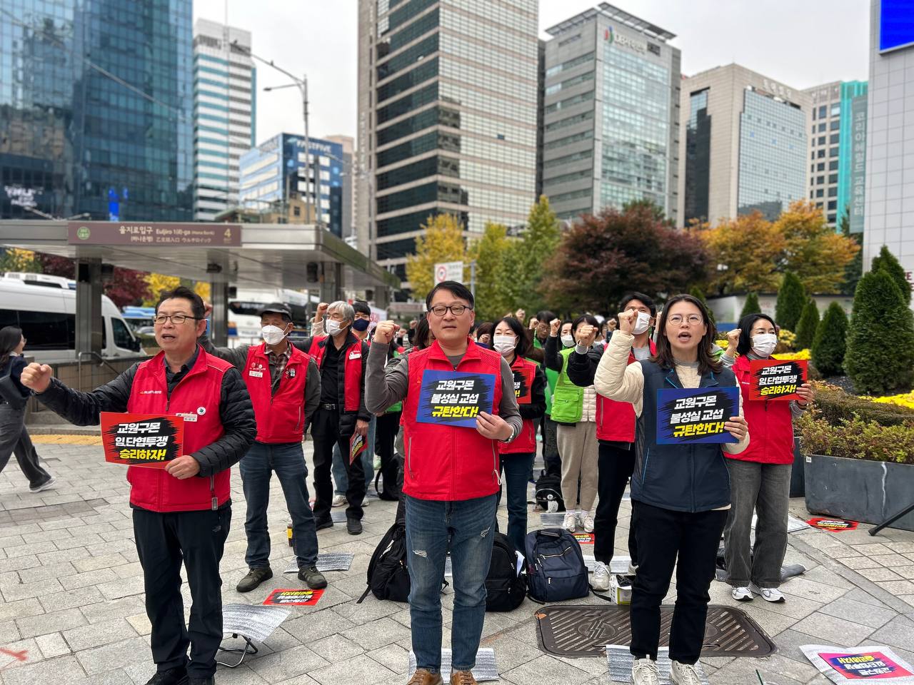 8일, 13시 서비스일반노동조합은 교원구몬 앞에서 사전대회를 진행했습니다. 교원구몬은 노골적인 실적강요와 승진협박으로 노동자들을 괴롭혀왔습니다. 실적을 채우지 못하면 퇴근을 못하게 하고, 인신공격성 발언을 일삼았습니다. 교원구몬은 이 모든 사실을 인정하지만 이것이 괴롭힘은 아니라고 합니다. 사측이 교섭에 임하는 태도도 이와 마찬가지입니다.