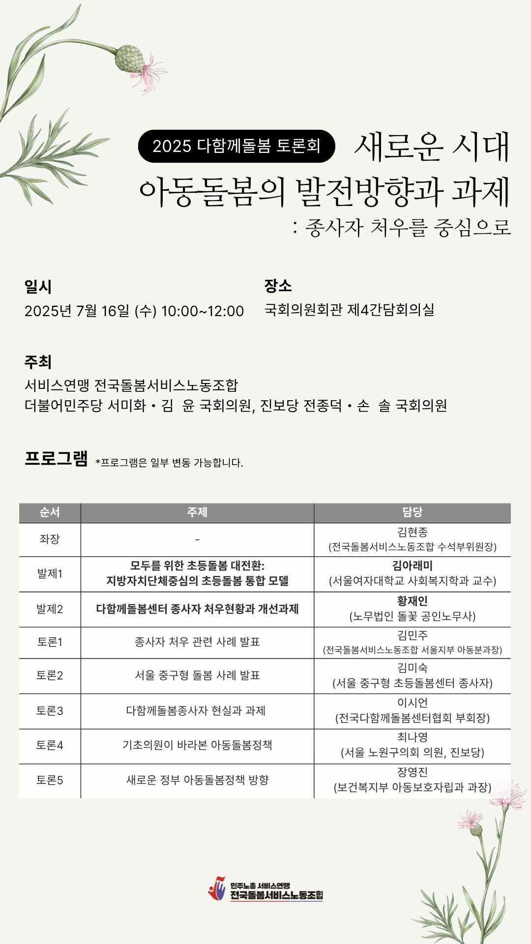 [자료집]2025 다함께돌봄토론회 “새로운 시대 아동돌봄 정책방향과 과제-종사자 처우를 중심으로”