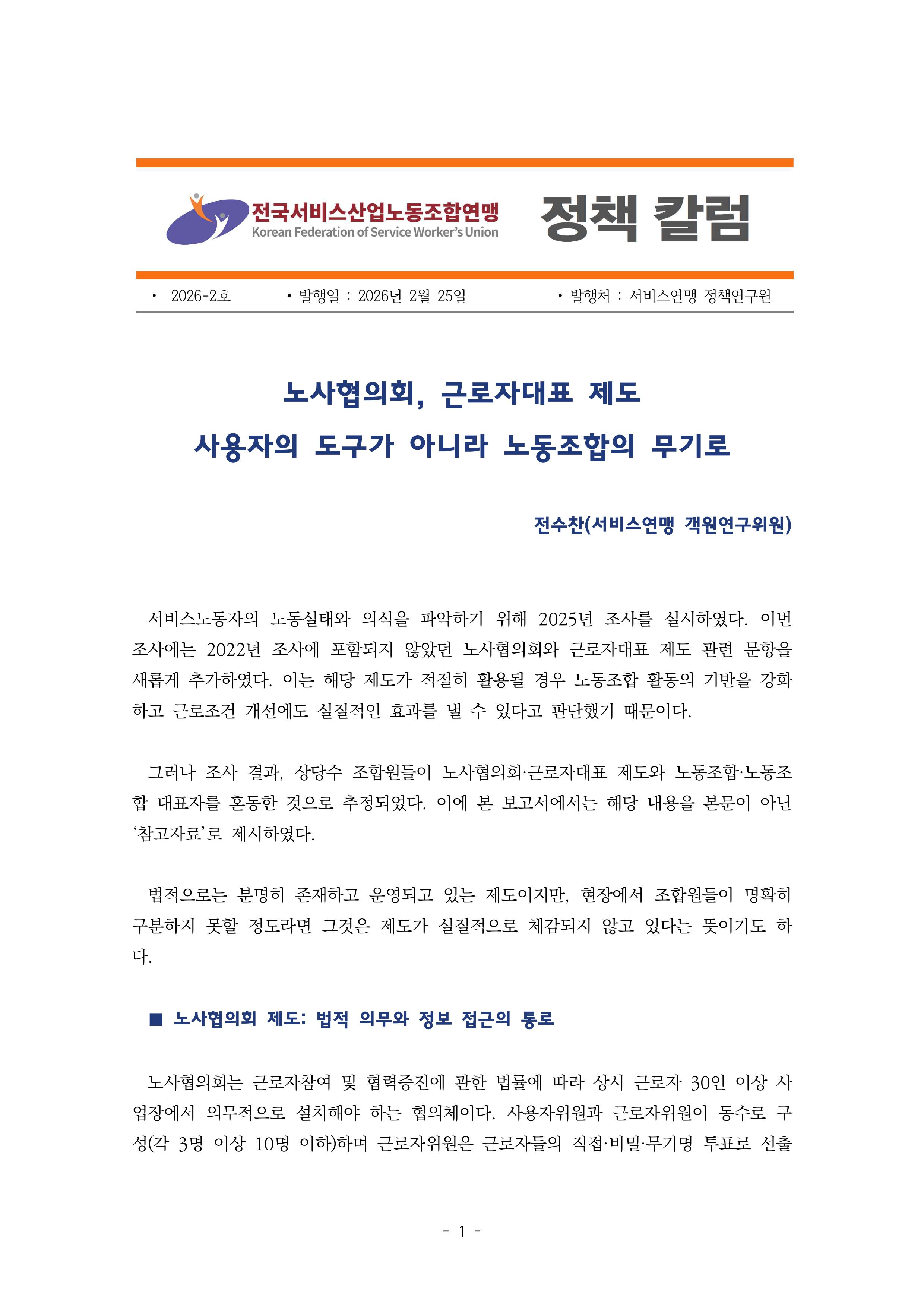 [정책칼럼] 노사협의회, 근로자대표 제도 사용자의 도구가 아니라 노동조합의 무기로